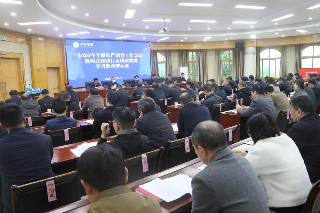 3月26日上午,学校召开2026年全面从严治党工作会议暨树立和践行正确政绩观警示教育会。校党委书记李明斌出席并讲话,党委委员、纪委书记刘波作纪委工作报告。会议由党委委员、副校长查振华主持。党委委员、副校长鲁卫东、雷志强、吴维勇出席会议。